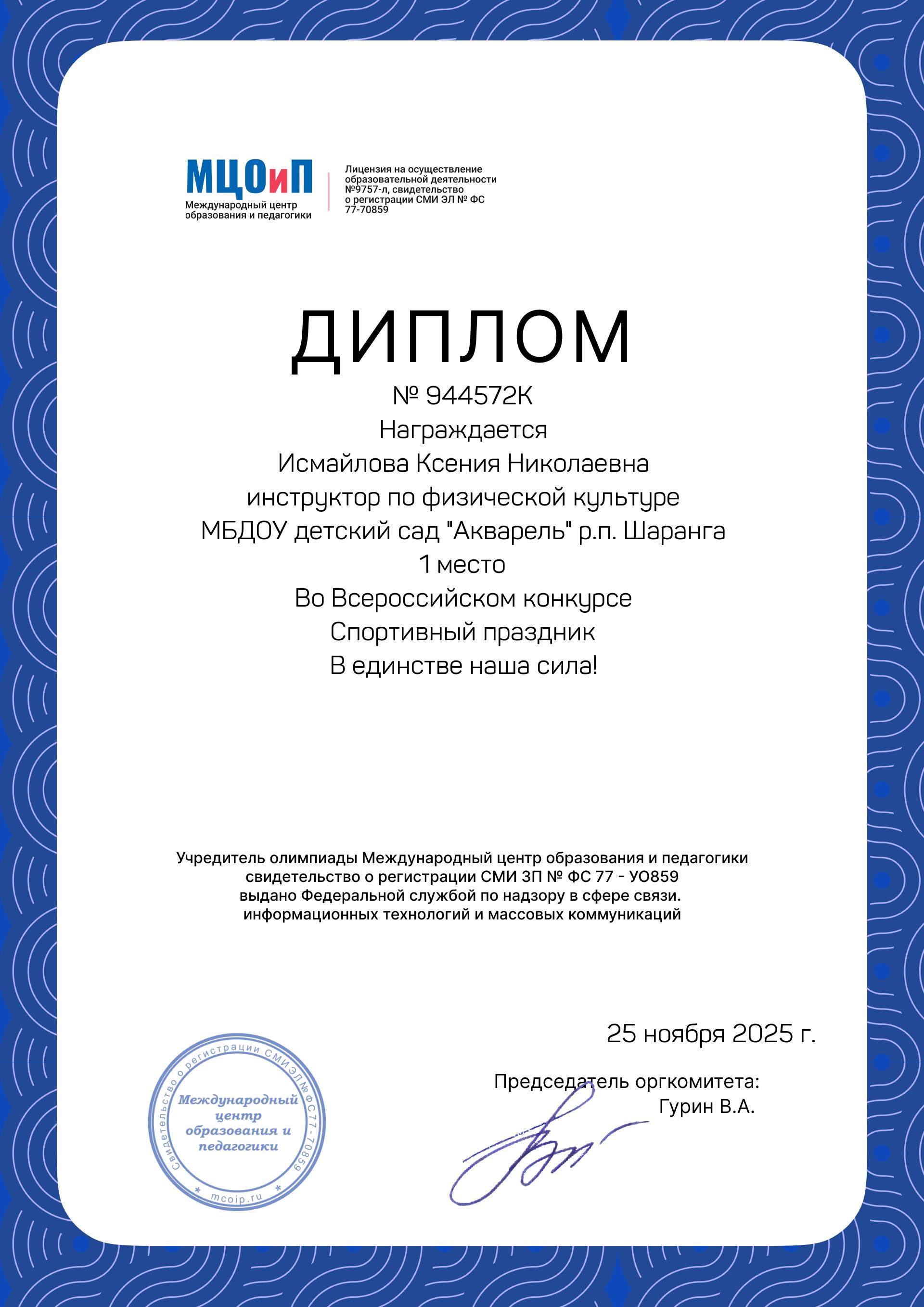 Сайт инструктора по физической культуре Исмайловой Ксении Николаевны